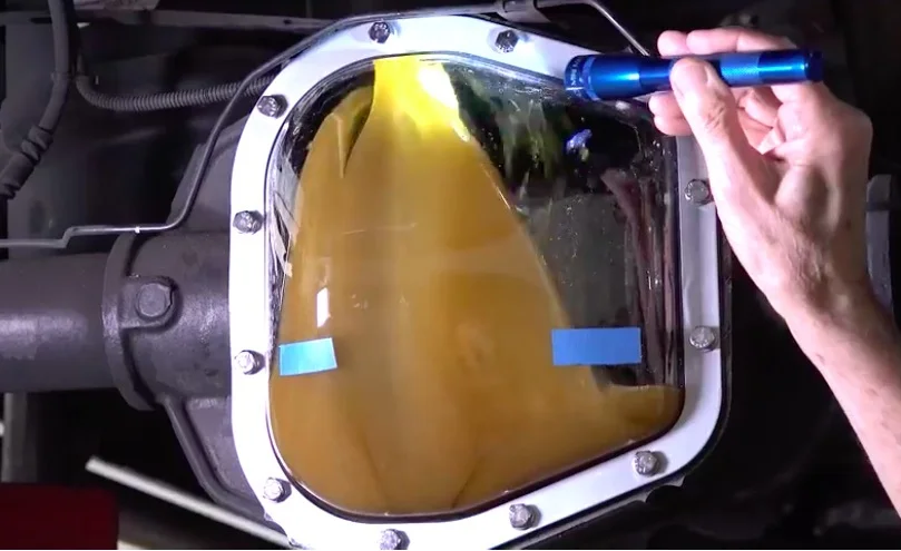 - Using a hand pump, fill new differential fluid through the fill hole until it starts to seep out—this indicates it’s full.